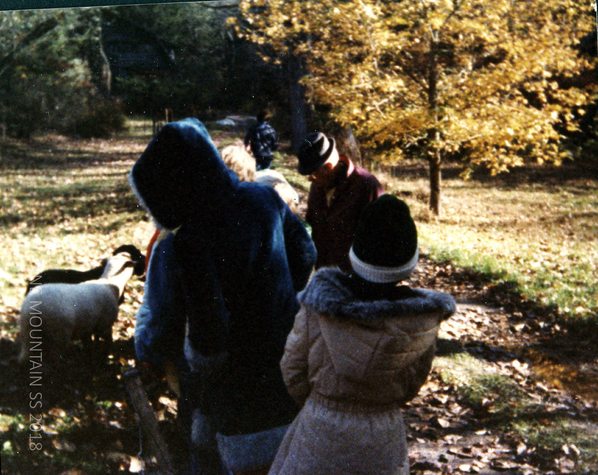 “How many of you ever heard hog calling? After some persuasion by Mr. Morris, the audience warmed up to the occasion and, with Old Aunt Till leading, half a dozen, one of them, little four-year-old Barbara Wilder [Brit and Ella Wilder’s daughter], filed up onto the porch and called the hogs or called the sheep, each in his or her own peculiar idiom. I know now why Mrs. [Alice Joy] Keith, when she first came, wondered what that train was that whistled down the valley at a certain time early each morning.” Community Day 1938