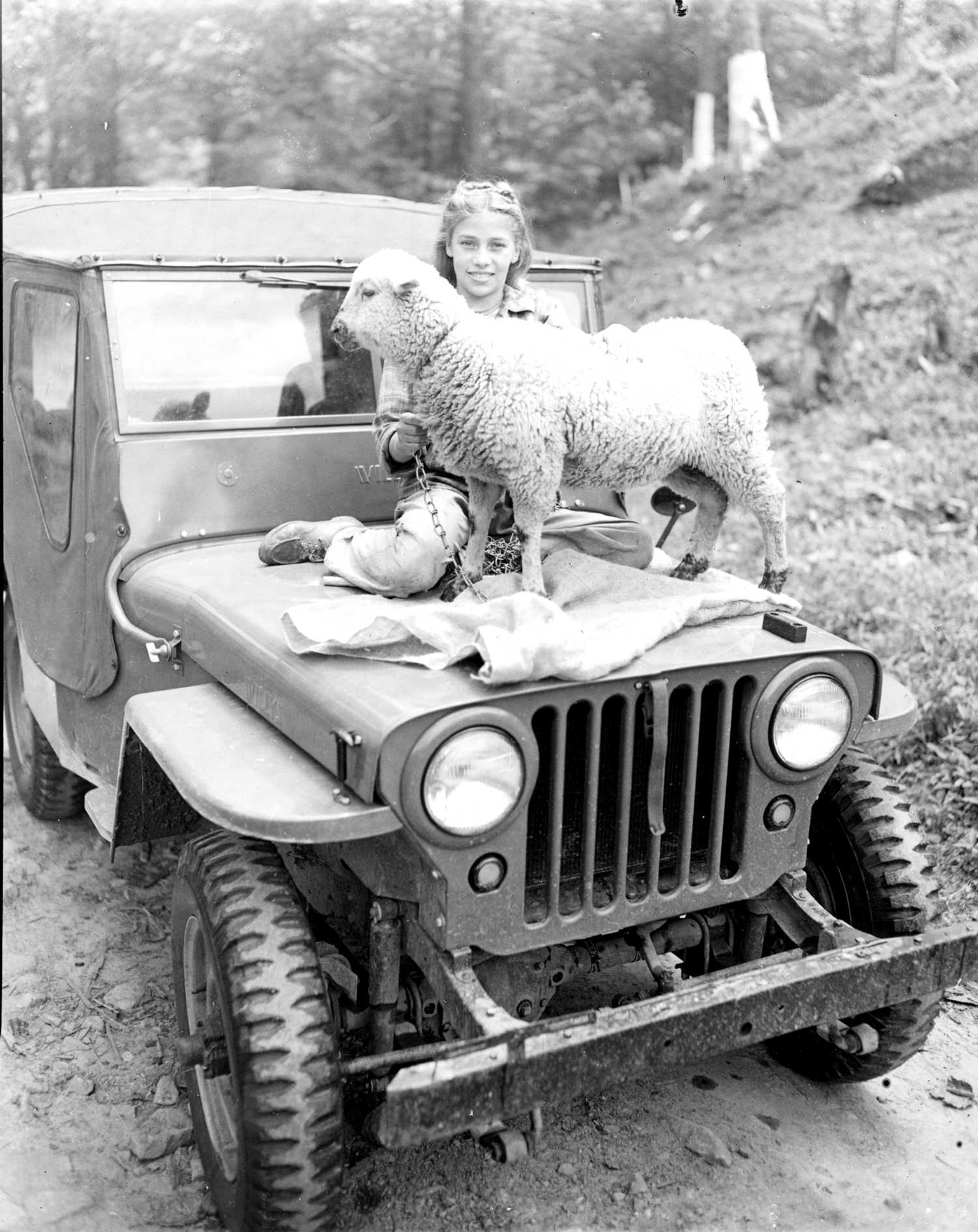Grace Rood’s jeep with girl and sheep. VI-51 – 1674.